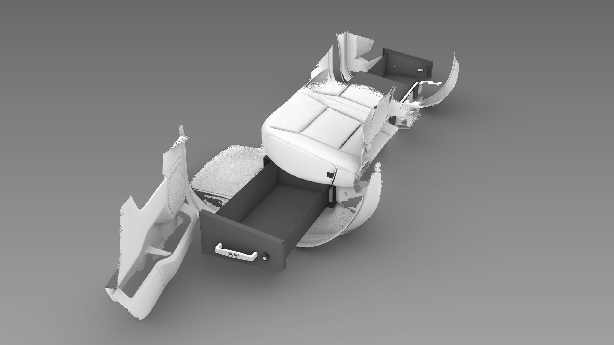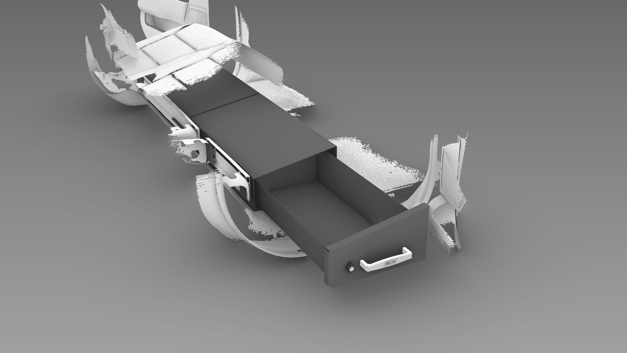 The T RuK underseat drawer is designed to be accessible from the most common and comfortable position (standing outside the truck) while making the best use of the space under your seat: